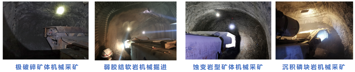 已在金川铜镍矿、驰宏锌锗彝良铅锌矿、山东黄金三山岛金矿、紫金矿业紫金山金铜矿、贵州磷化瓮福磷矿、新疆有色卡尔恰尔萤石矿等矿山成功开展试验应用。通过采用高度机械化连续开采模式,可有效降低爆破采矿的危险性与有害影响,减轻了人员劳动强度,提升矿山本质安全水平,为企业带来显著的技术提升和经济效益。