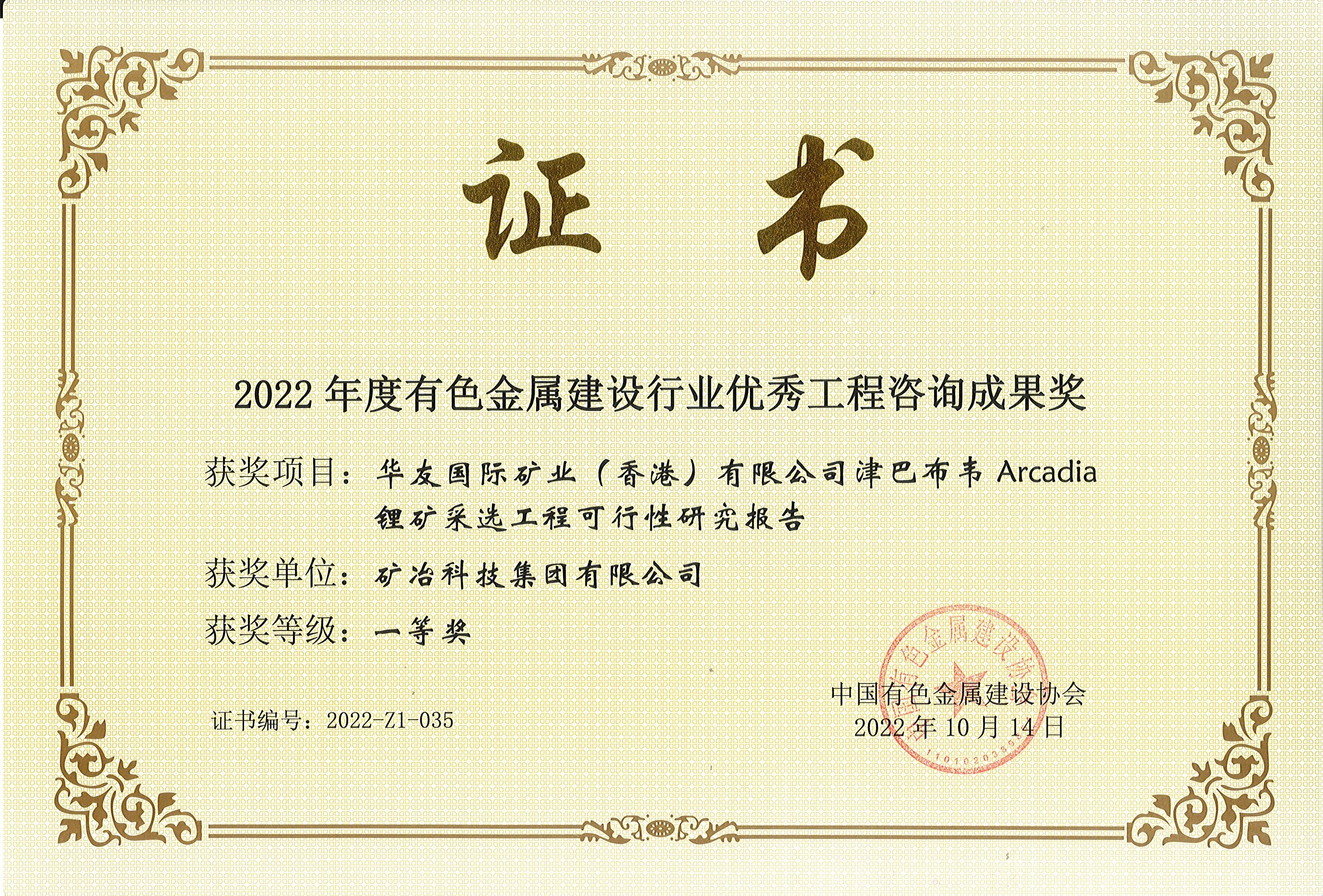 华友国际矿业(香港)有限公司津巴布韦Arcadia锂矿采选工程可行性研...