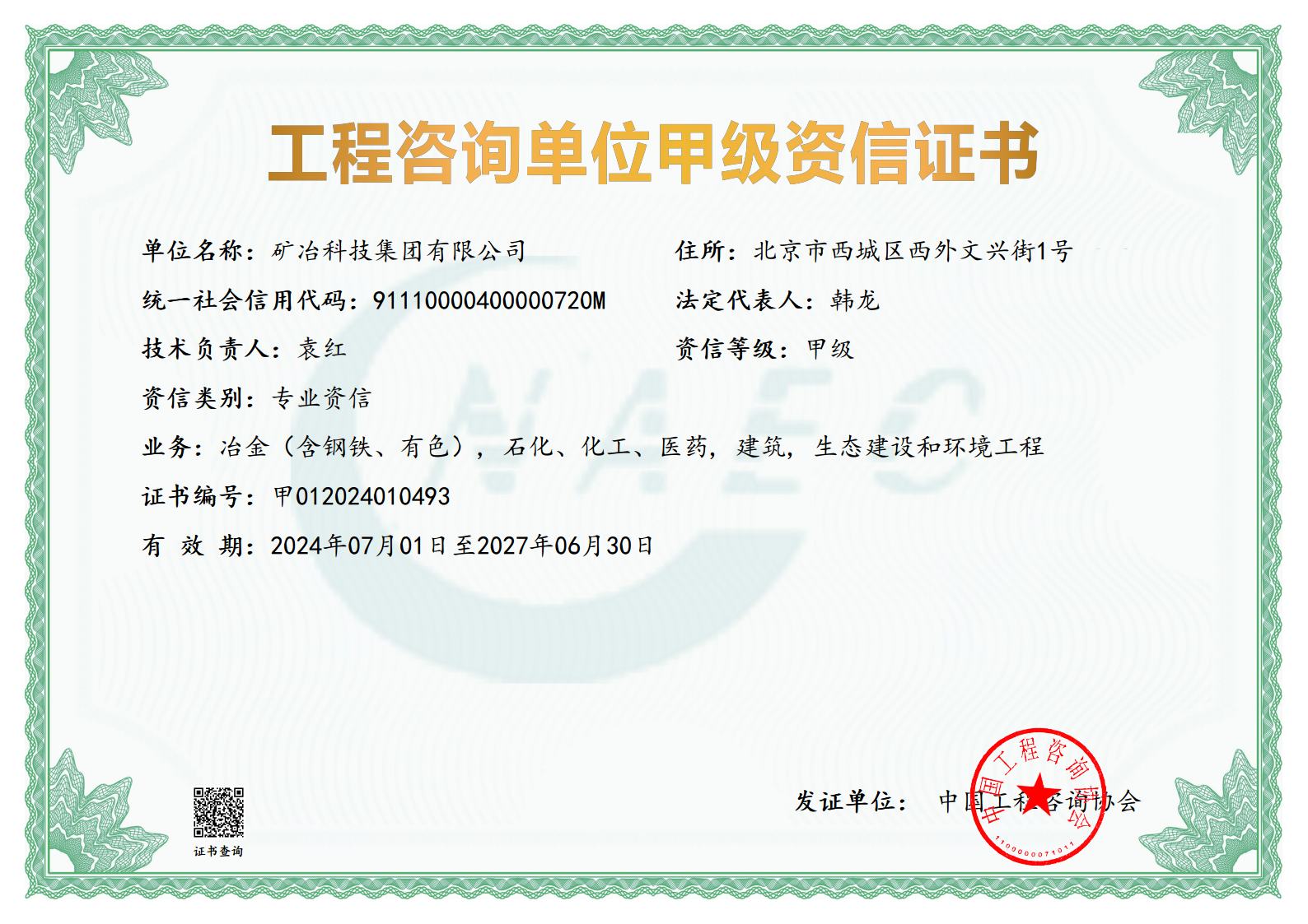 资信甲级证书